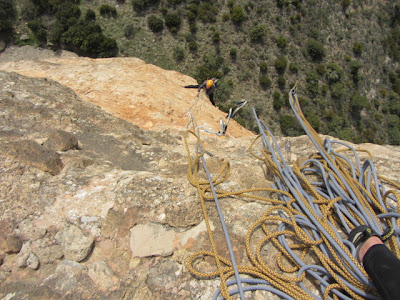 ferrata y tener solamente una hora de luz. En cuatro rápeles estábamos abajo