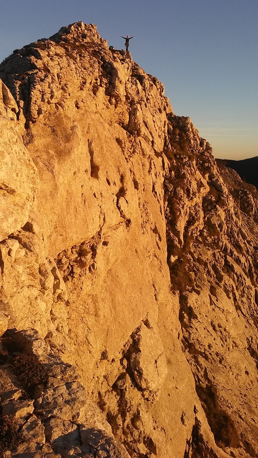 La Vela. Nos dará tiempo???por su vía Francisco Prieto. Atrás dejamos el Pajarito donde se vé perfectamente al contraluz el rapel desde la aguja central de la foto.