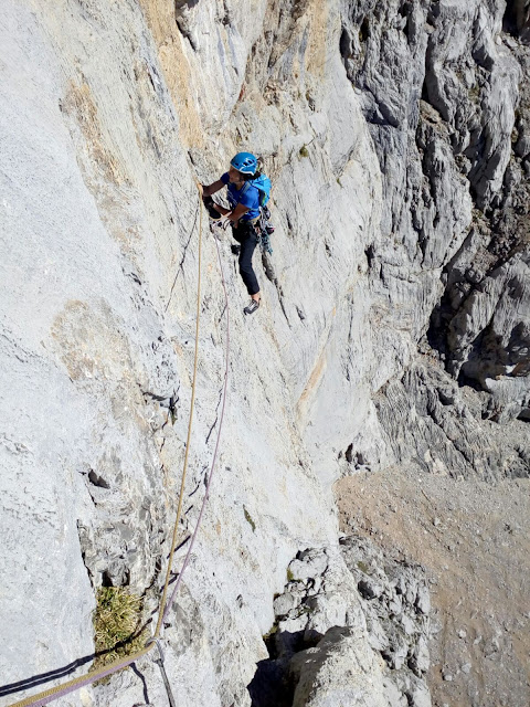 Siempre hablamos, contamos y exageramos (en especial la que suscribe) de escaladas ascendidas, pero esta vez he querido escribir de esta vía de la que me he tenido que bajar.